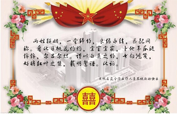 天悅名苑的全體工作人員特地為我們的這對新人業(yè)主朋友手工制作了一張別具風(fēng)格的證書。