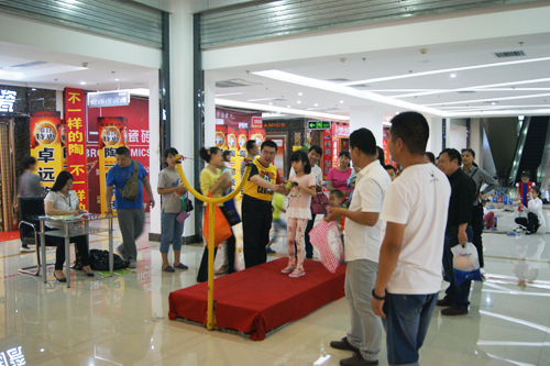 5月21日至5月22日,為回饋全市父老鄉(xiāng)親兄弟姊妹的關心與厚愛,為時兩天的全市人民游戲冷餐宴在滏瑞特時代廣場舉行。一大清早,商場內(nèi)便熱鬧非凡,隨著時間的流逝,人流在不斷的增多。孩子們一進門就興奮地朝著一桌子的點心跑去:泡芙、蛋卷、餅干、不同口味的蛋糕、西瓜水果、果汁飲料讓人垂涎欲滴......之后,最吸引孩子們的要數(shù)場內(nèi)的各種游戲了。一層大廳擺著多米諾骨牌隨意供小朋友和家長玩,接著是一套游戲闖關,共有五關:憤怒的小鳥、體感水果忍者、進攻vs防御、指壓板、意念對抗,整個商場成了孩子們的樂園,洋溢著歡樂的氣氛。