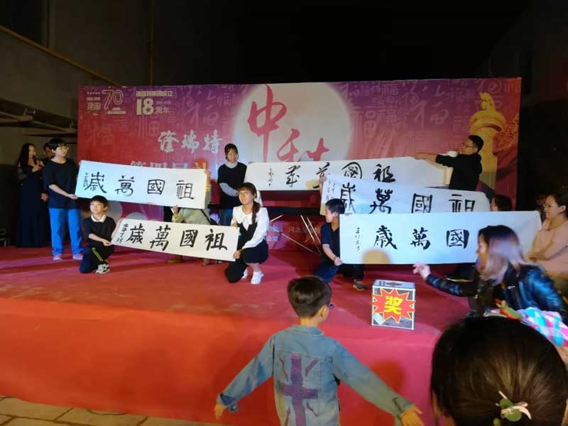 為慶“祖國70周年”小朋友以篆書、隸書、楷書、行書、草書的形式寫下“祖國萬歲”為祖國慶生。